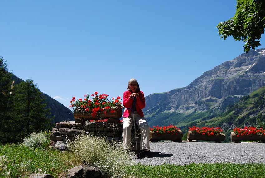 Endlich wieder auf sicherem Boden, vor dem Bergrestaurant Buljes.